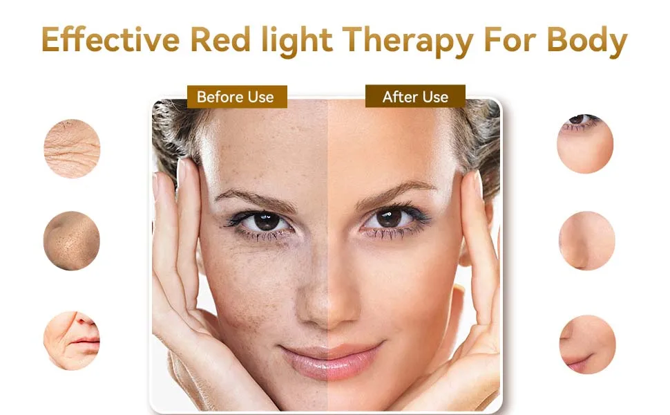 Improve skin:The 660nm deep red light can stimulate cell repair and deep skin beauty care, while the 850nm near-infrared light penetrates deep into the skin . Therefore, it speeds up the metabolism of cells and the circulation of blood in the capillaries, diminishes freckles and red blood streaks, and has an effect that can't be ignored against aging.