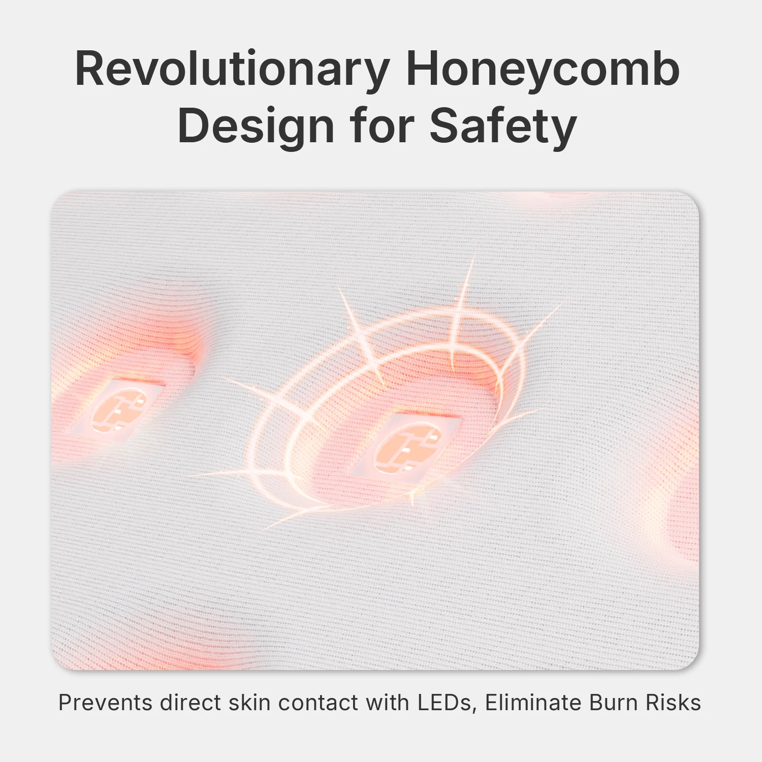 Our patented hexagonal matrix and 8-stage thermal control eliminate skin-LED contact. Tested to prevent overheating at maximum power (UL/CE certified) - safer than 93% of competitor mats.