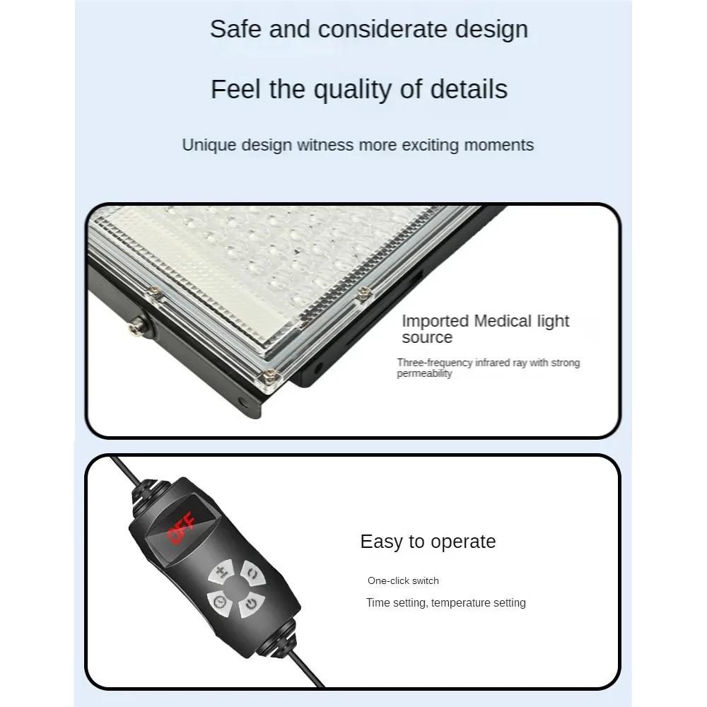 4. Large-area infrared light source: Due to the more uniform heat distribution in the irradiation area, the coverage of the irradiation area is wider, which can effectively relieve pain in the joints, neck, back and other limbs